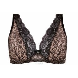 Zmysłowy biustonosz typu SOFT, w klasycznej czarno- beżowej kolorystyce zapewni uczucie maksymalnego komfortu.